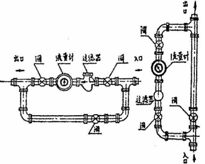 4、连续流程的管道,安装流量计的水平管道应装有旁路阀,以便定时清洗、检修。在垂直管道上流量计,应装在旁路管道中以防止杂物落入仪表内。