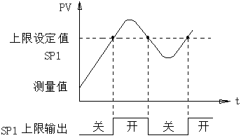 例如 SP1设定为上限报警,SP1=上限设定值,P1h=0,P1c=31,则SP1报警输出。
