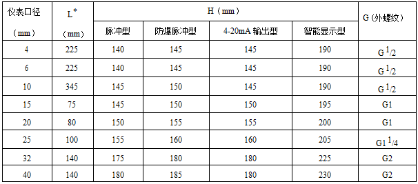 螺纹连接型涡轮流量计应用范围和安装尺寸