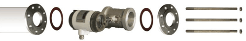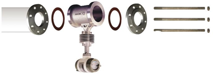 本仪表采用法兰夹装式(又叫对夹式、夹持式) ,拧紧长螺栓用两片法兰夹住传感器,法兰凹部套传感器,法兰凸部套用户管,安装步骤如下: