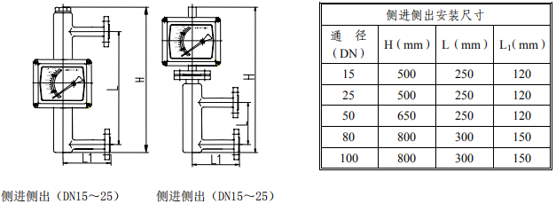 四、侧进测出型金属管浮子流量计流量表