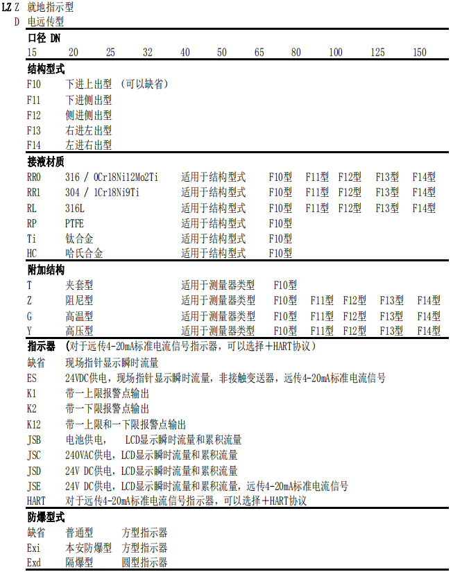 七、侧进测出型金属管浮子流量计选型型谱