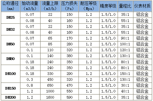 3、始动流量小,量程比宽,适合于计量负荷变动大的气体流量计量。