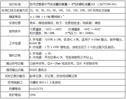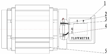 气体腰轮流量计有5个部分组成,分别为:1、本安型体积修正仪;2、流量传感器;3、压力传感器;4、温度传感器;5、气体罗茨流量计(机械)