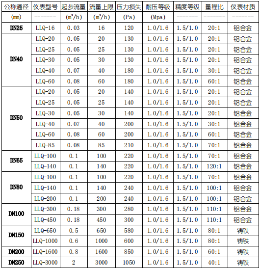 3、始动流量小,量程比宽,适合于计量符合变动大的气体流量。