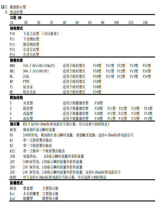 五、金属管浮子流量计选型型谱