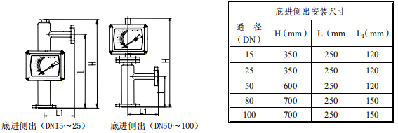 五、底进侧出型浮子流量计尺寸