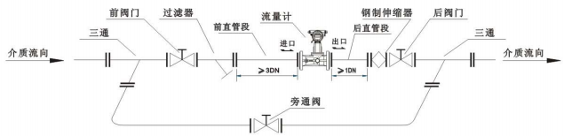4、流量计前直管段≥3DN,后直管段≥1DN。