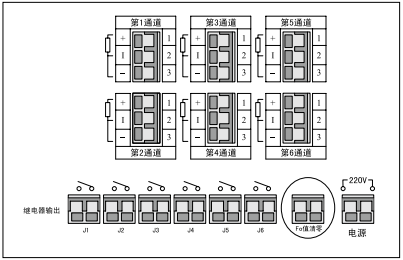 (1)提供六组继电器接点输出,由用户任意组合使用