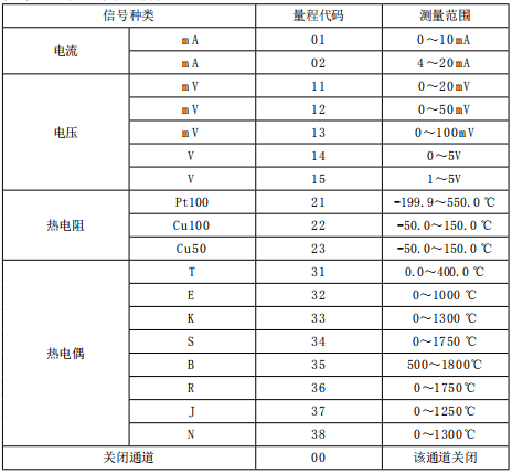 (2)每个通道的测量信号种类可由用户自己设定也可在定货时注明。[由厂方为用户设定好]