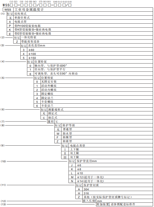 3、温度计指示部分:(按温度计标度盘的外径表示)分φ60、φ100、φ150mm;