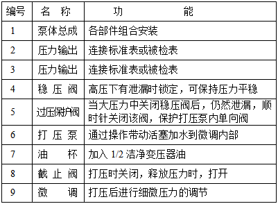 三、液压压力校验台各部件名称及功能