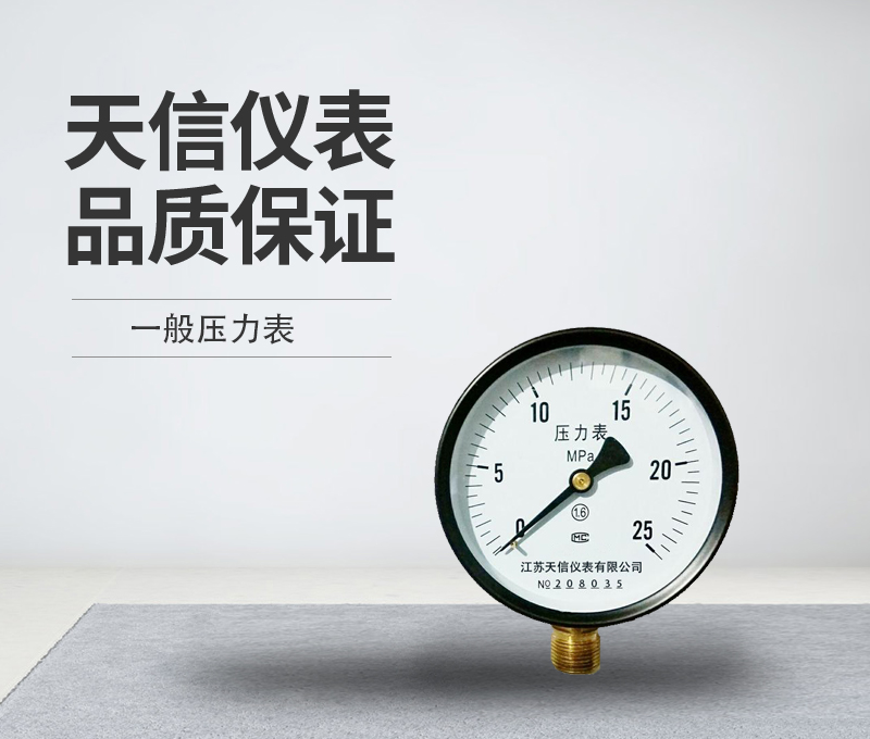 一般压力表属于就地指示型压力表,就地显示压力的大小,不带远程传送显示、调节功能。 在工业过程控制与技术测量过程中,由于一般压力表的弹性敏感元件具有很高的机械强度以及生产方便、安装简单读数方便等特性,使得一般压力表得到越来越广泛的应用。
