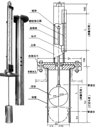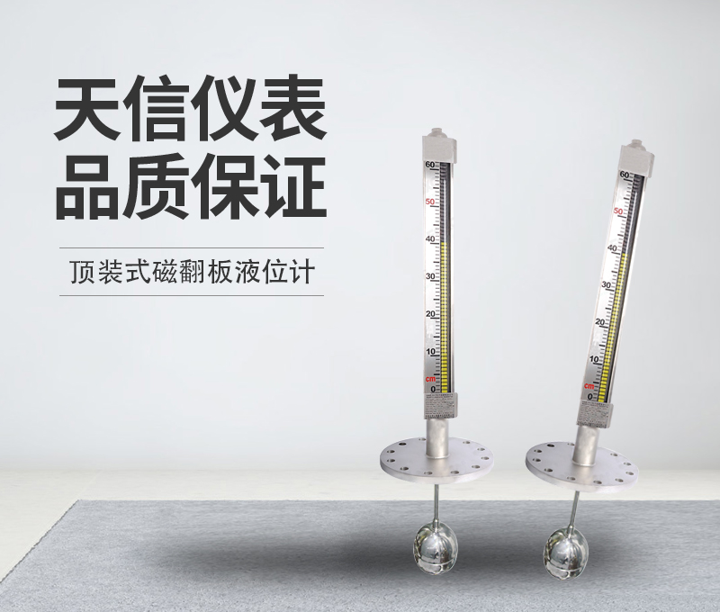 顶装式磁翻板液位计适合于各种地下储罐及侧面不宜开口的容器的液位测量,产品可以做到密封、防泄漏,由于液体介质与指示器完全隔离,测量液位非常安全、可靠、耐用。仪表可现场显示液位高度,配上液位报警、控制开关,可实现液位的上、下限报警和控制,配上电远传液位变送器,可将液位信号转换成二线制4~20mADC标准信号输出,实现远距离检测、指示、记录与控制。