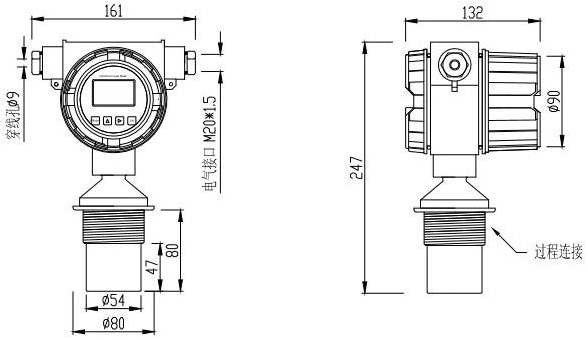 (1)探头发射面到最低液位的距离,应小于选购仪表的量程。