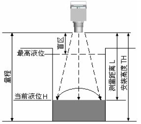 (2)探头发射面到最高液位的距离,应大于选购仪表的盲区。