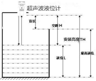 2、探头发射面到最高液位的距离,应大于仪表的盲区。