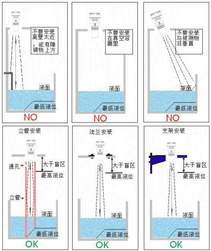 4、探头的安装位置应尽量避开正下方进、出料口等液面剧烈波动的位置。