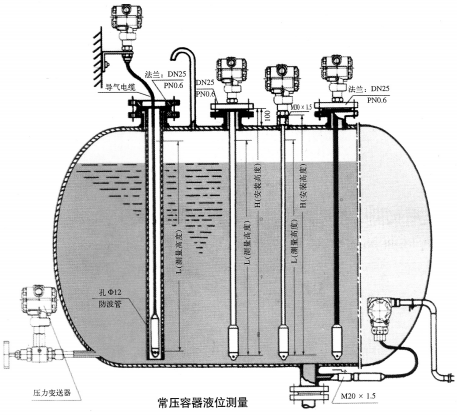 8、 在介质波动较大的场合,应采取固定措施,如采用孔φ12的防波管;